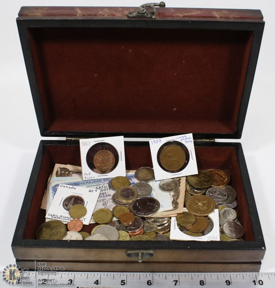 DECORATIVE BOX W/ESTATE COIN COLLECTION