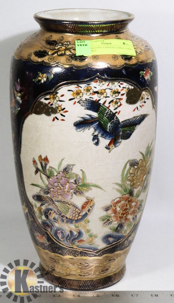 DECORATIVE CHINESE LARGE VASE, 22" TALL