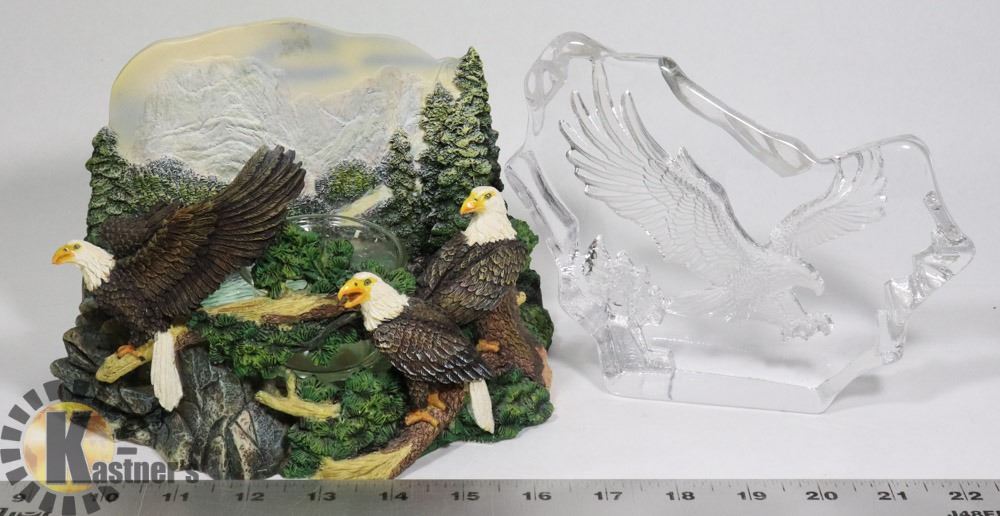 HOLDER & GLASS EAGLE ORNAMENT. HOME
