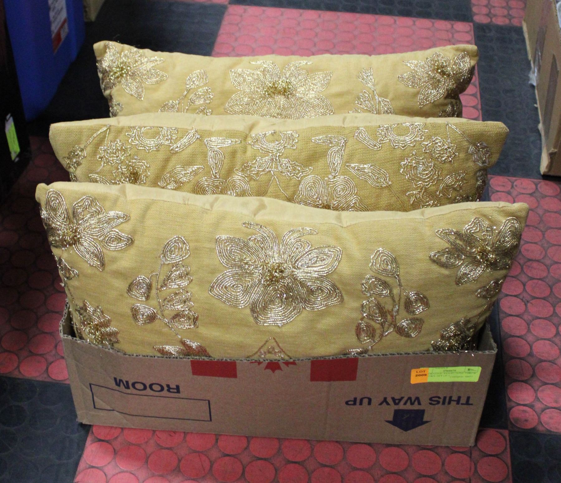 DECORATIVE  GOLD  TONE THROW PILLOWS- SET OF 3