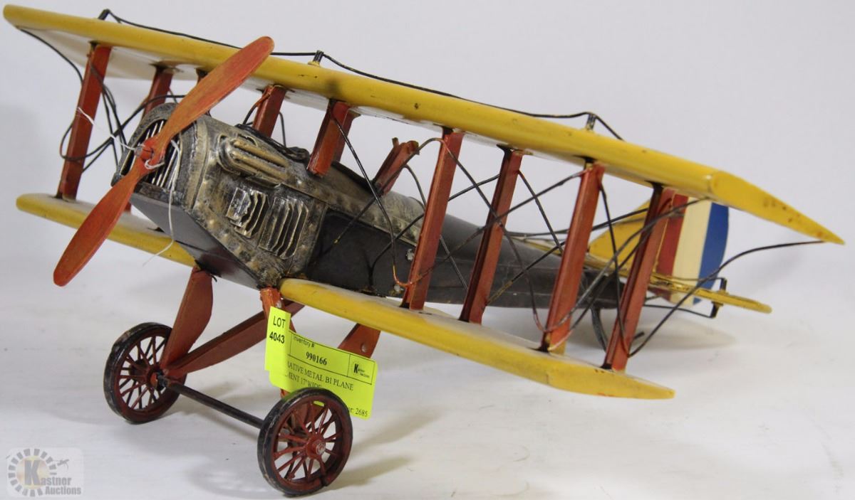 DECORATIVE METAL BI PLANE ORNAMENT 17"WIDE