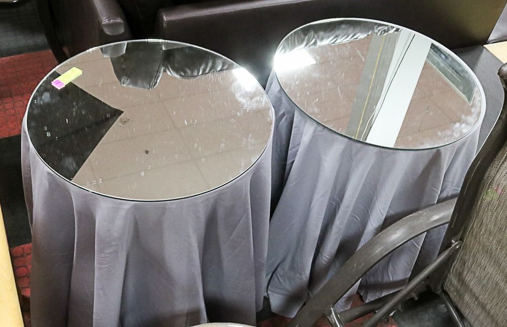 DECORATIVE SIDE TABLE WITH SKIRT AND MIRROR