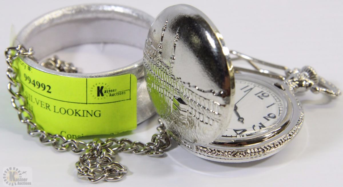 DECORATIVE SILVER LOOKING POCKET WATCH