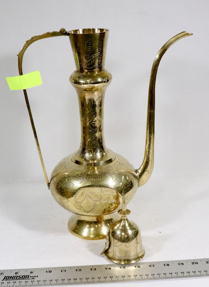 COFFEE POT; ENGRAVED DESIGN; 20" HIGH. HOUSEHOLD.