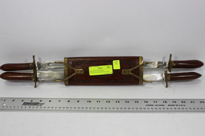 DECORATIVE WOODEN HUNTING/CARVING KNIFE SET & CASE