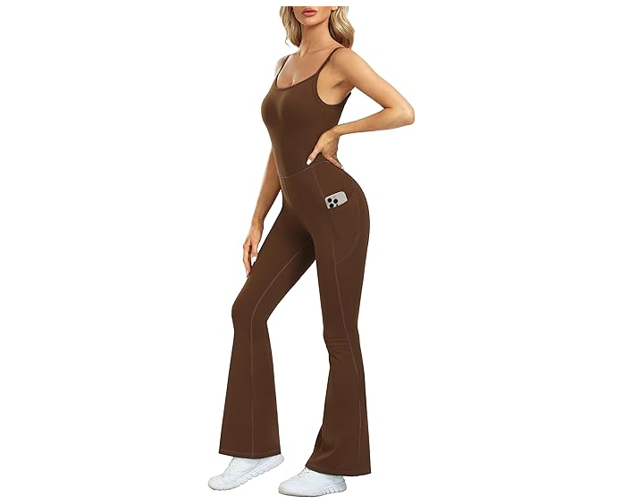 DESOL FLARE JUMPSUIT FOR WOMEN WITH POCKETS ONE PIECE BODYCON BODYSUIT TUMMY CONTROL WORKOUT UNITARD PLAYSUIT FALL