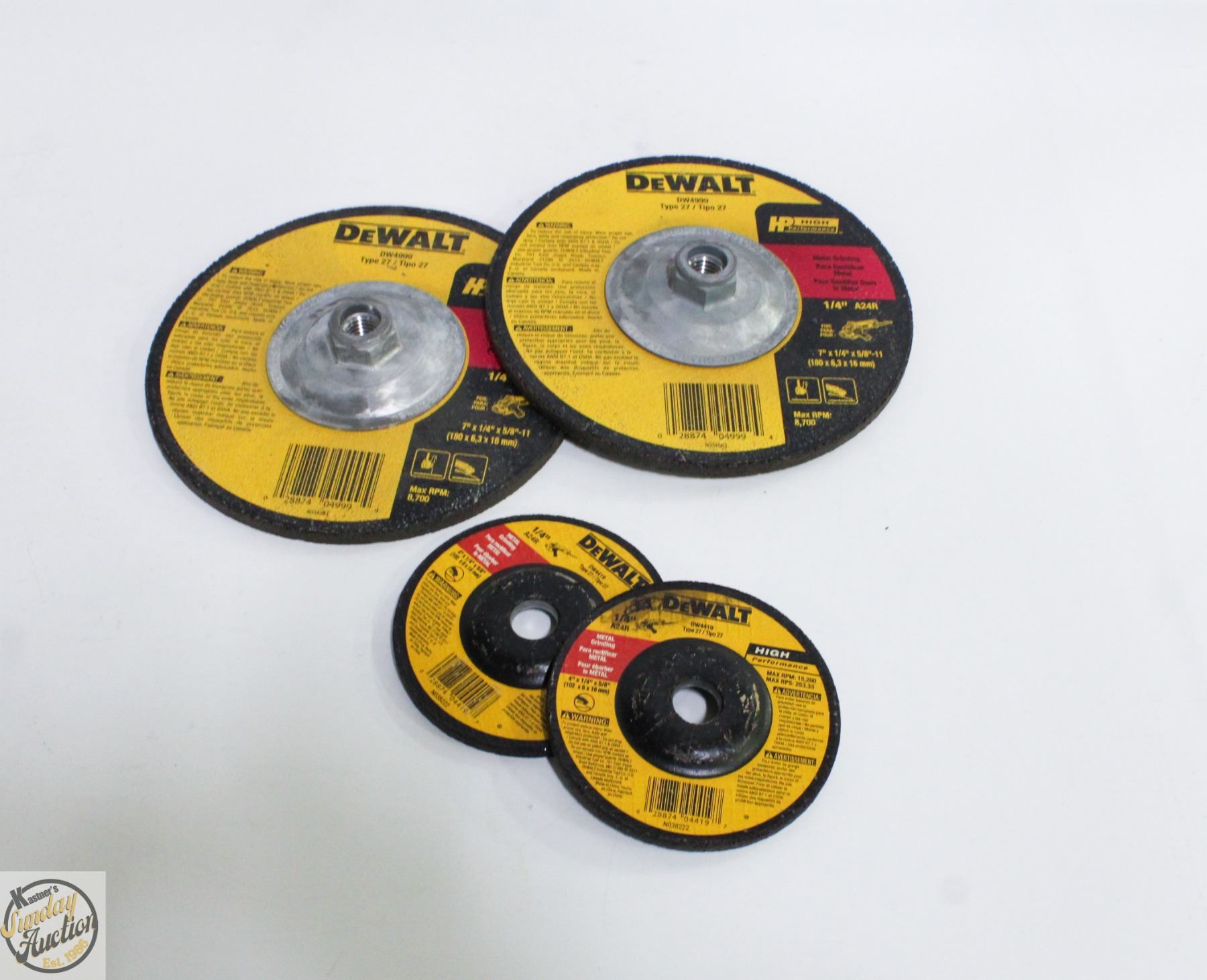 CUTTING WHEELS LOT OF 4 (UNUSED) **ALL ITEMS MUST BE REMOVED BY 5PM SATURDAY, JANUARY 24TH 2026. ALL REMAINING ITEMS WILL BE SUBJECT TO A $6.00 PER DAY STORAGE CHARGE. ANY ITEMS REMAINING AFTER MONDAY, FEBRUARY 9TH 2026, WILL BE CONSIDERED FORFEITED. NO REFUNDS WILL BE ISSUED FOR FORFEITED ITEMS. TO SCHEDULE A PICK UP APPOINTMENT CLICK HERE