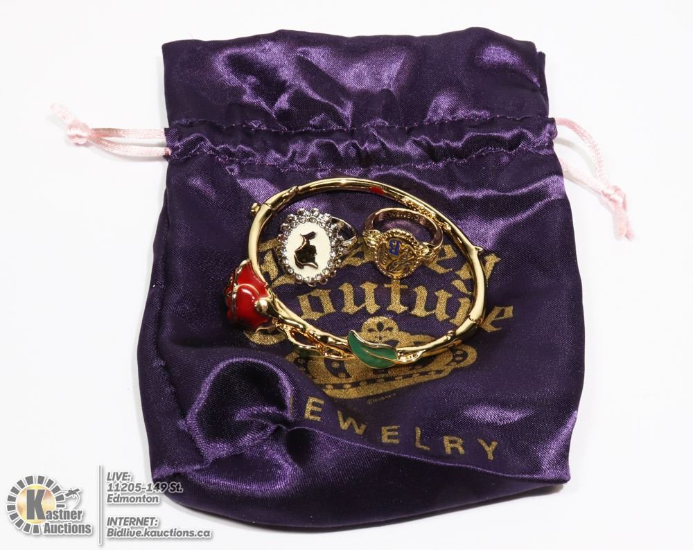 DISNEY COUTURE JEWELRY. BEAUTY AND THE BEAST HINGED ROSE BANGLE, BEAUTY AND THE BEAST RING SIZE 7, CINDERELLA/SWAROVSKI RING SIZE 7