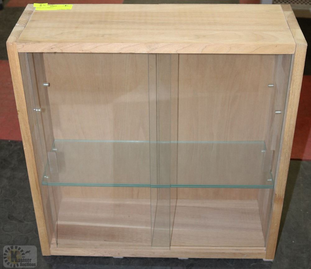 WOOD AND GLASS WITH TWO SHELVES AND TWO SLIDING DOORS 19" X 19"
