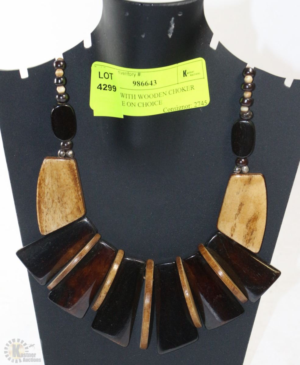 DISPLAY WITH WOODEN CHOKER NECKLACE