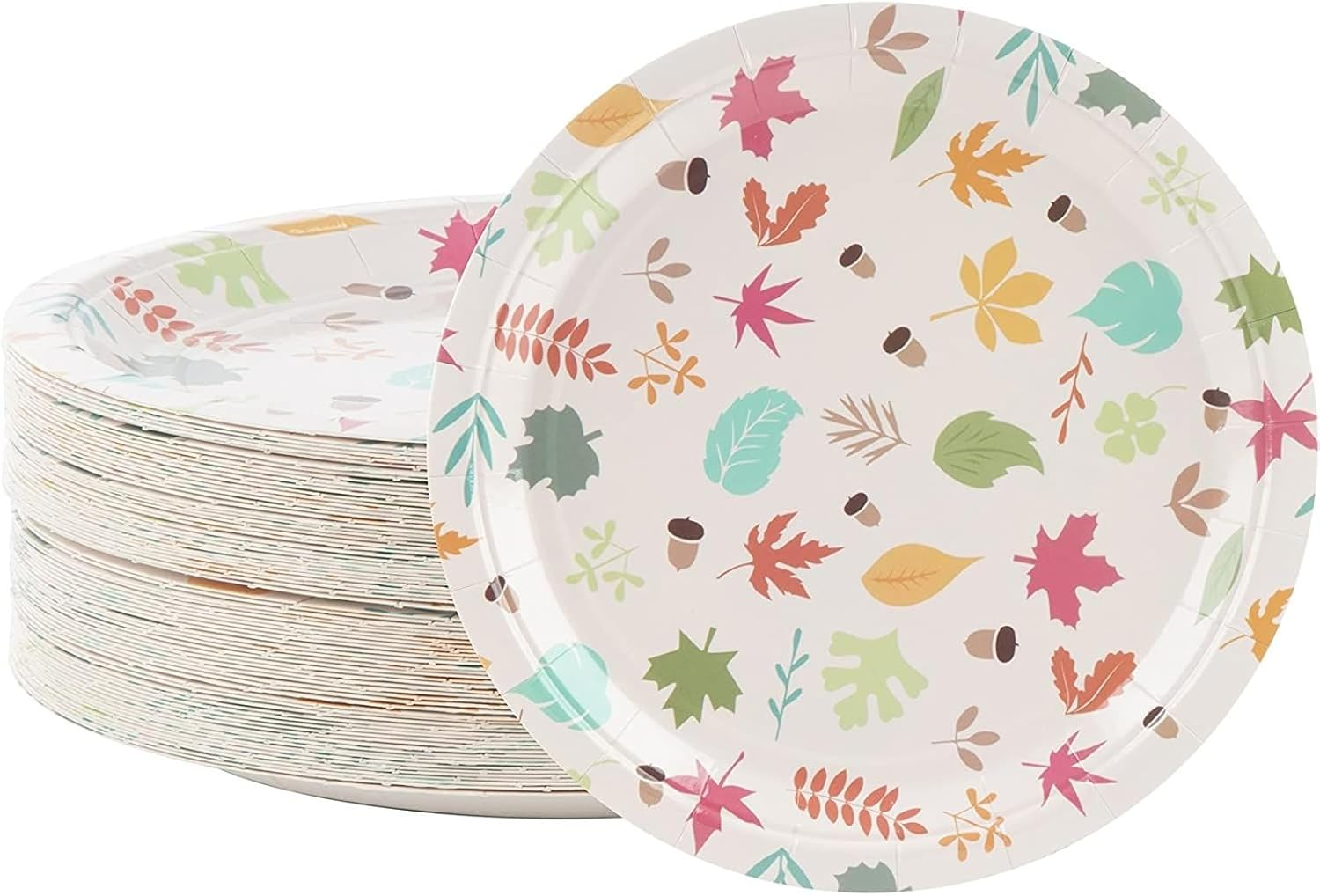DISPOSABLE PLATES - 80-COUNT PAPER PLATES, AUTUMN PARTY SUPPLIES FOR APPETIZER, LUNCH, DINNER, AND DESSERT, KIDS BIRTHDAYS, FALL LEAVES DESIGN, 9 X 9 INCHES