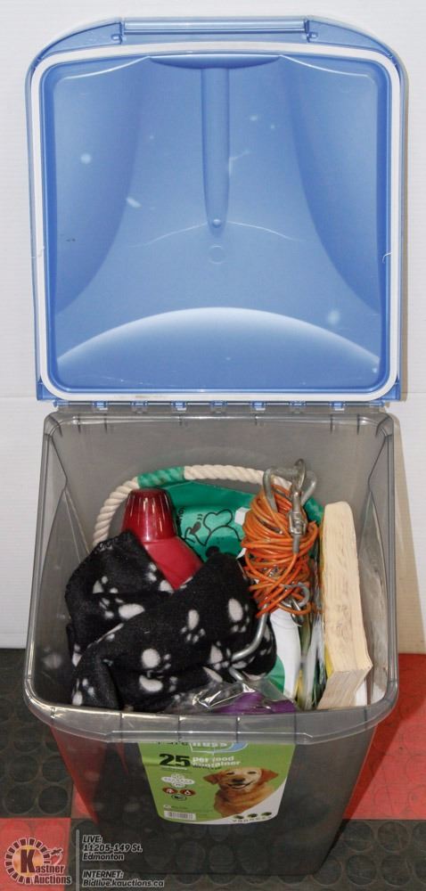 FULL OF PET CARE ITEMS INCL. BOWLS, BLANKET, LEASHES, COLLAR, ODOR PRODUCTS, TOYS, DOG TRAINING BOOKS, ETC.