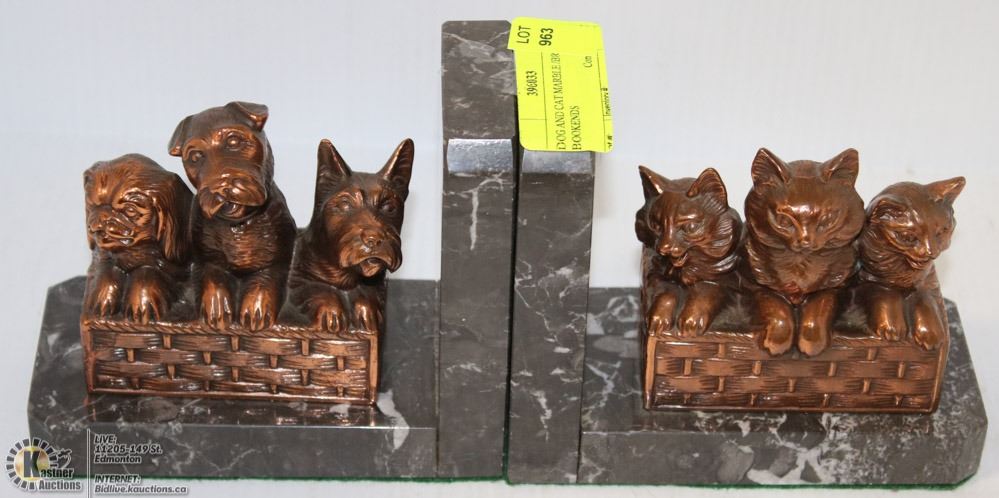 DOG AND CAT MARBLE /BRASS BOOKENDS