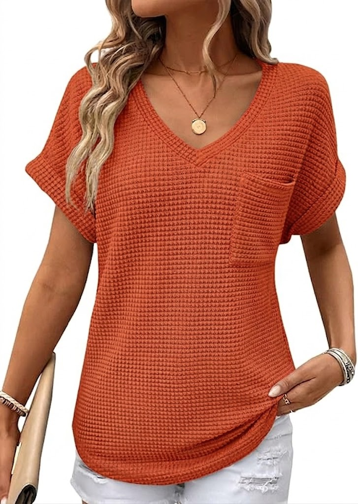 DOKOTOO WOMENS WAFFLE KNIT TOPS 2026 SPRING SUMMER V NECK T SHIRTS CASUAL TRENDY WOMEN'S BLOUSES -N