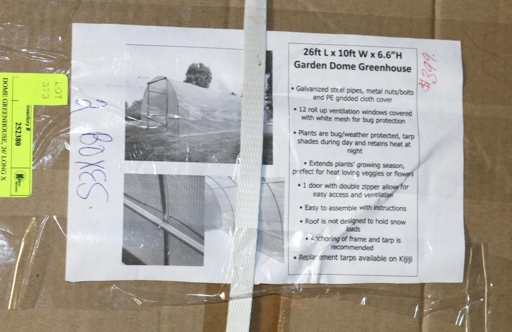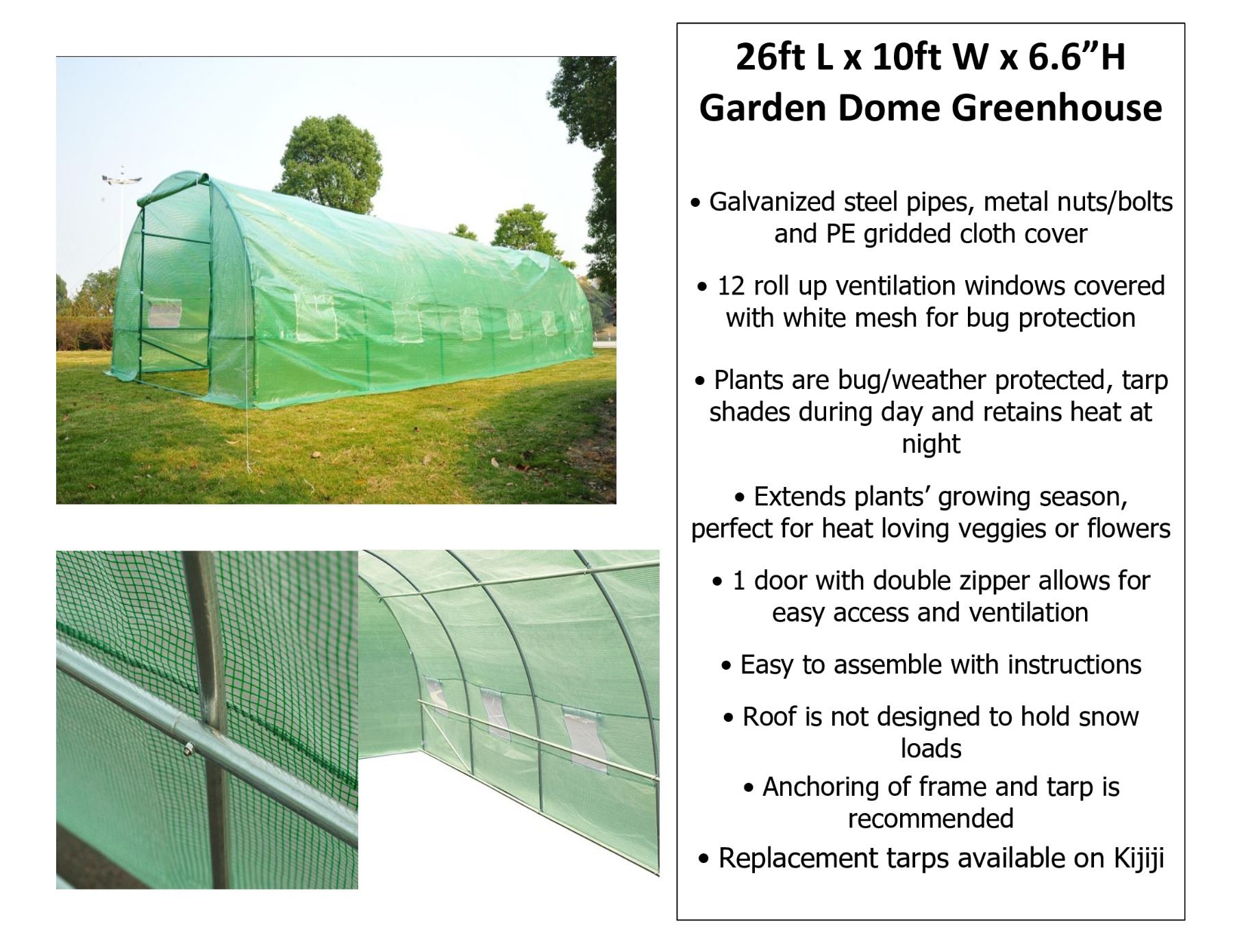 DOME GREENHOUSE, 26' LONG X 10'WIDE X 6.7FT HIGH
