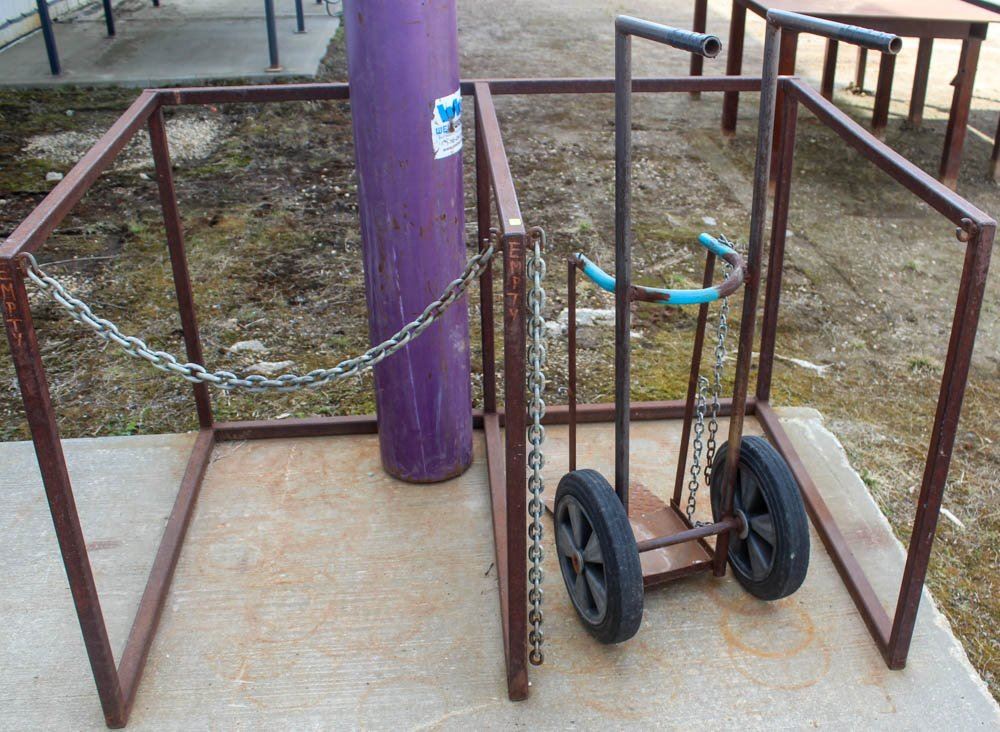 DOUBLE BOTTLE STAND W/ BOTTLE DOLLY. 59.25"X41.5"X36"