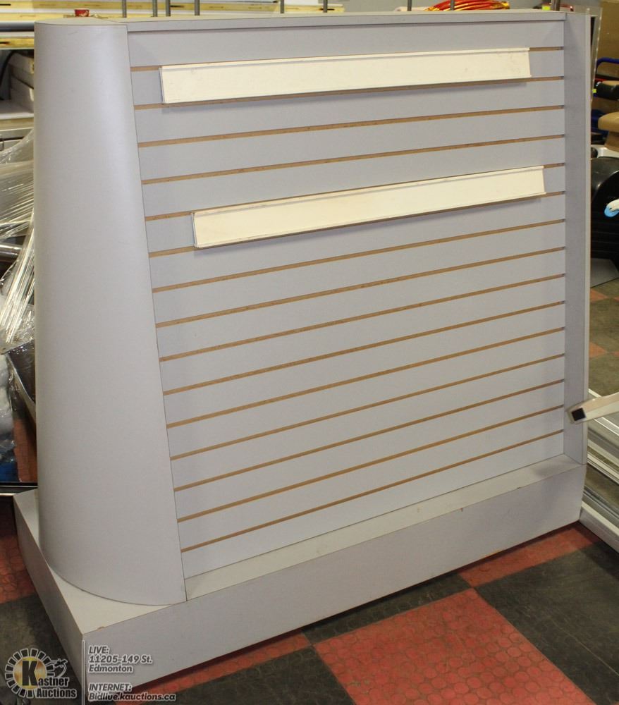 DOUBLE SIDED SLAT WALL DISPLAY ON WHEELS