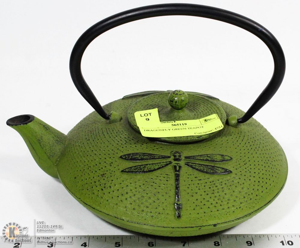 DRAGONFLY CAST IRON GREEN TEAPOT
