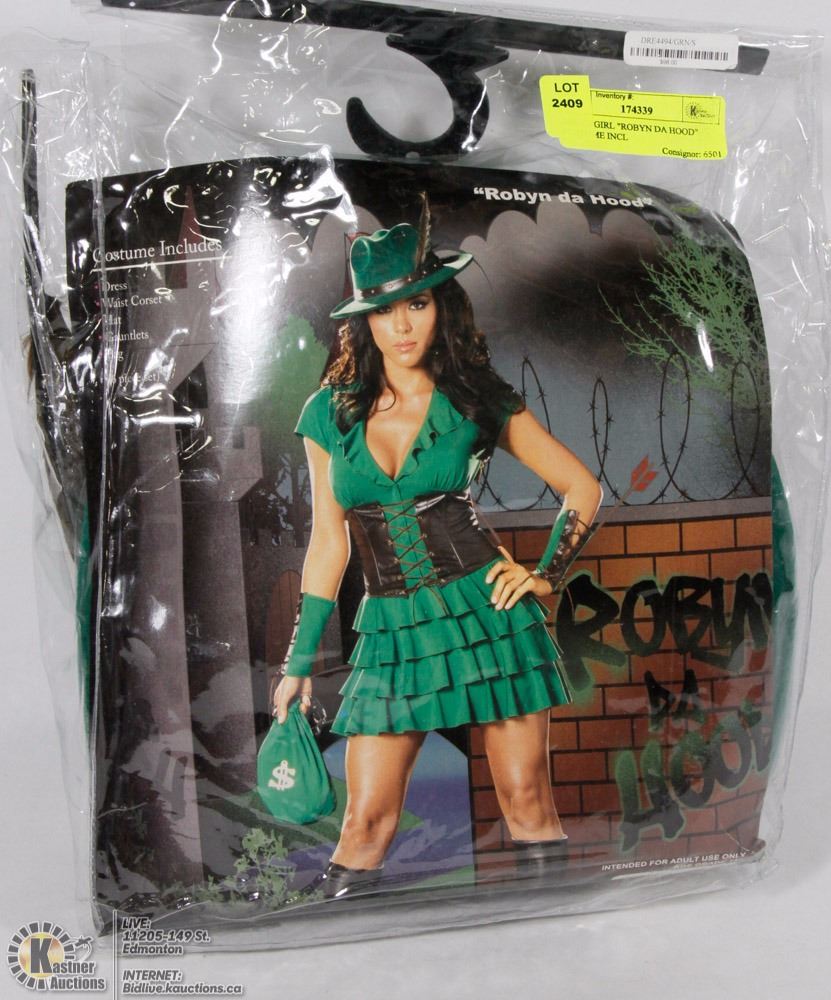 DRESS, WAIST CORSET, HAT , GAUNTLETS AND BAG. SIZE SMALL
