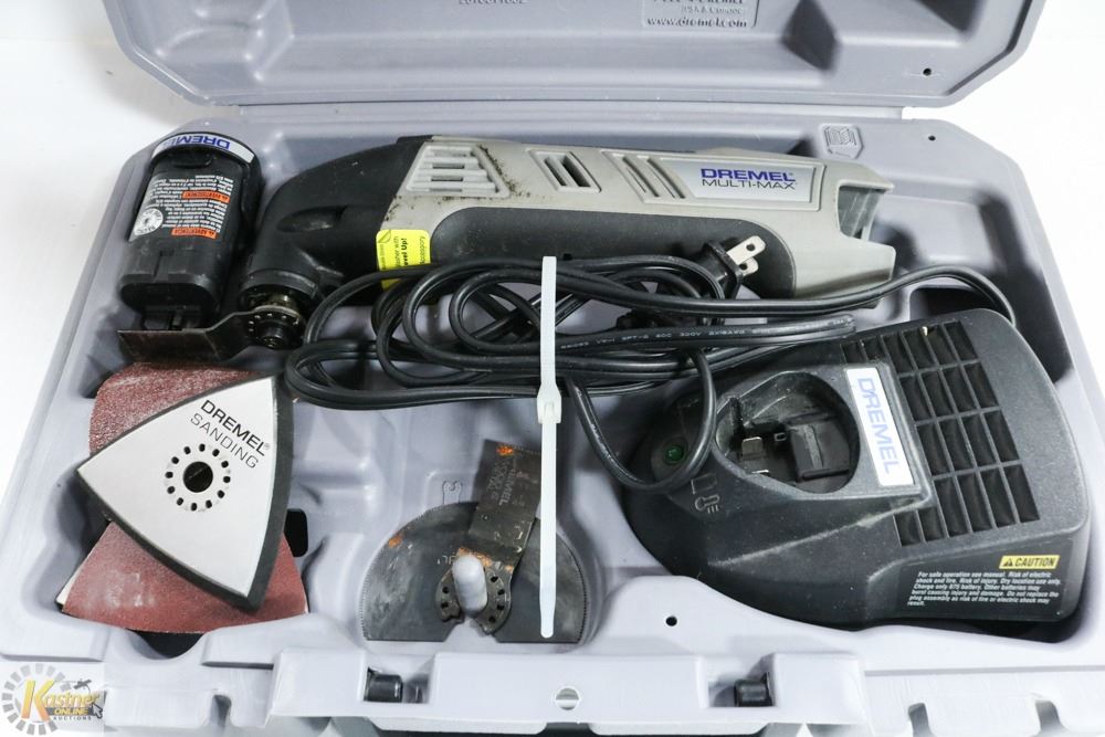 OSCILLATING/SANDING TOOL - 12 VOLT WITH CHARGER, MULTI-SPEED IN CASE WITH SEVERAL CUTTING BLADES AND SAND PAPER (WKG)