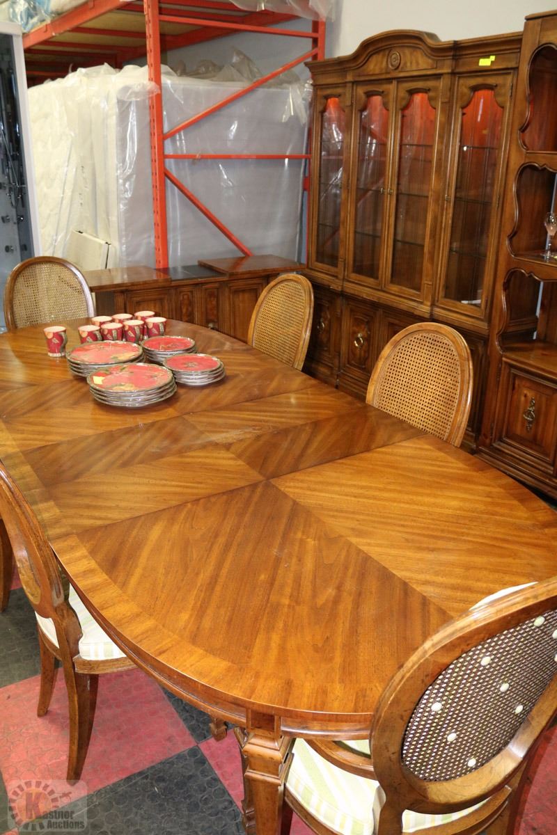 WITH TWO LEAFS, FOUR SIDE CHAIRS, & TWO CAPTAINS CHAIRS; AND BUFFET & HUTCH WITH BUILT IN INTERNAL LIGHTING; AND SERVER TABLE WITH LEAFS 44"X104"X29"H BUFFET 65"X15"X82"HSERVER TABLE 42"X18"X32"H