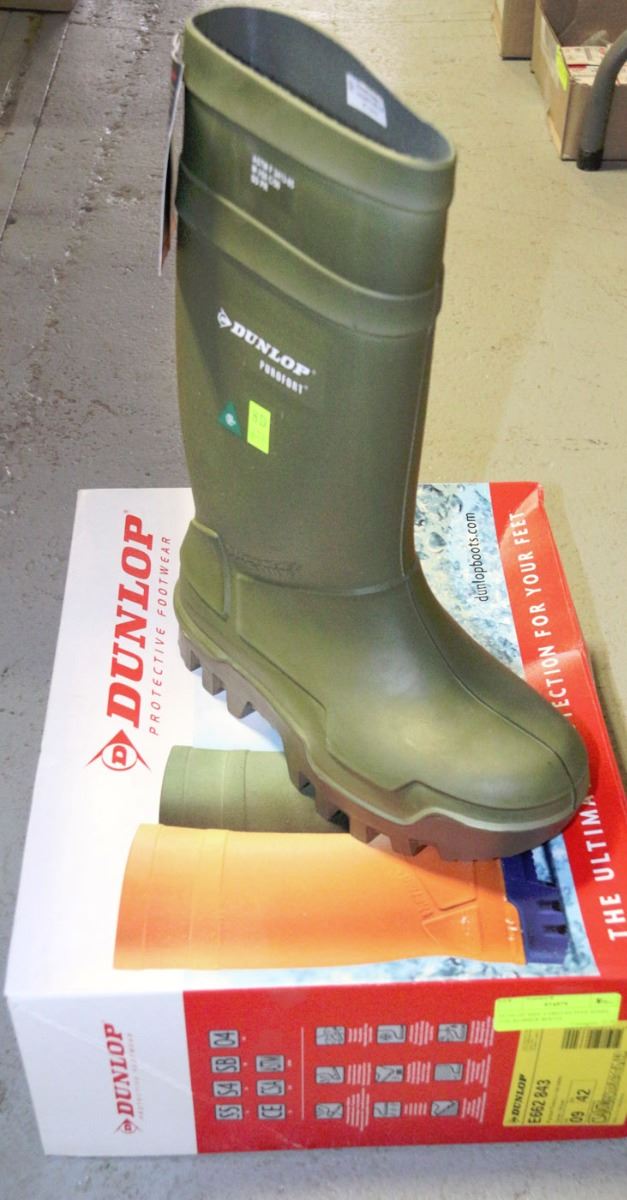 DUNLOP SIZE 9 PROTECTIVE STEEL TOE RUBBER BOOTS