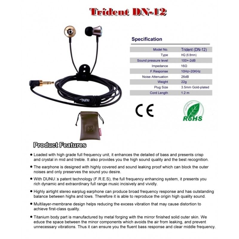 DYNAMIC DRIVER MODEL EARPHONES DN-12