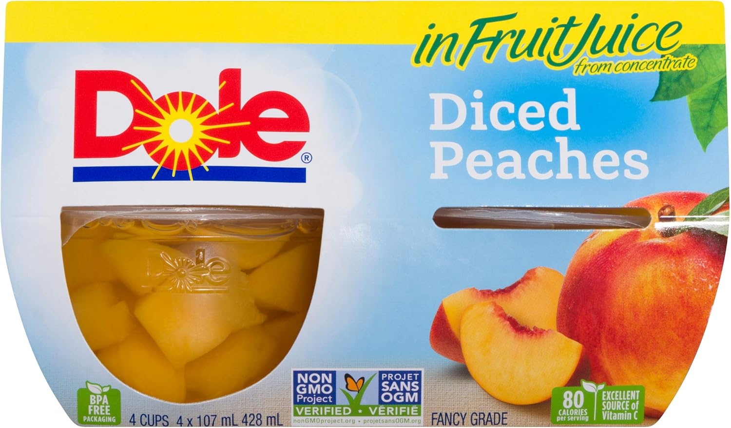 Dole Fruit Bowls Diced Peaches In Fruit Juice, Healthy Snack, 107 ml (30 cups)