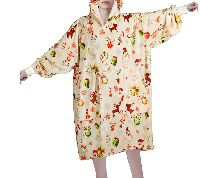 EASY-GOING OVERSIZED FLANNEL WEARABLE BLANKET HOODIE FOR ADULTS, ONE SIZE FITS ALL | Category: Clothing/Shoes