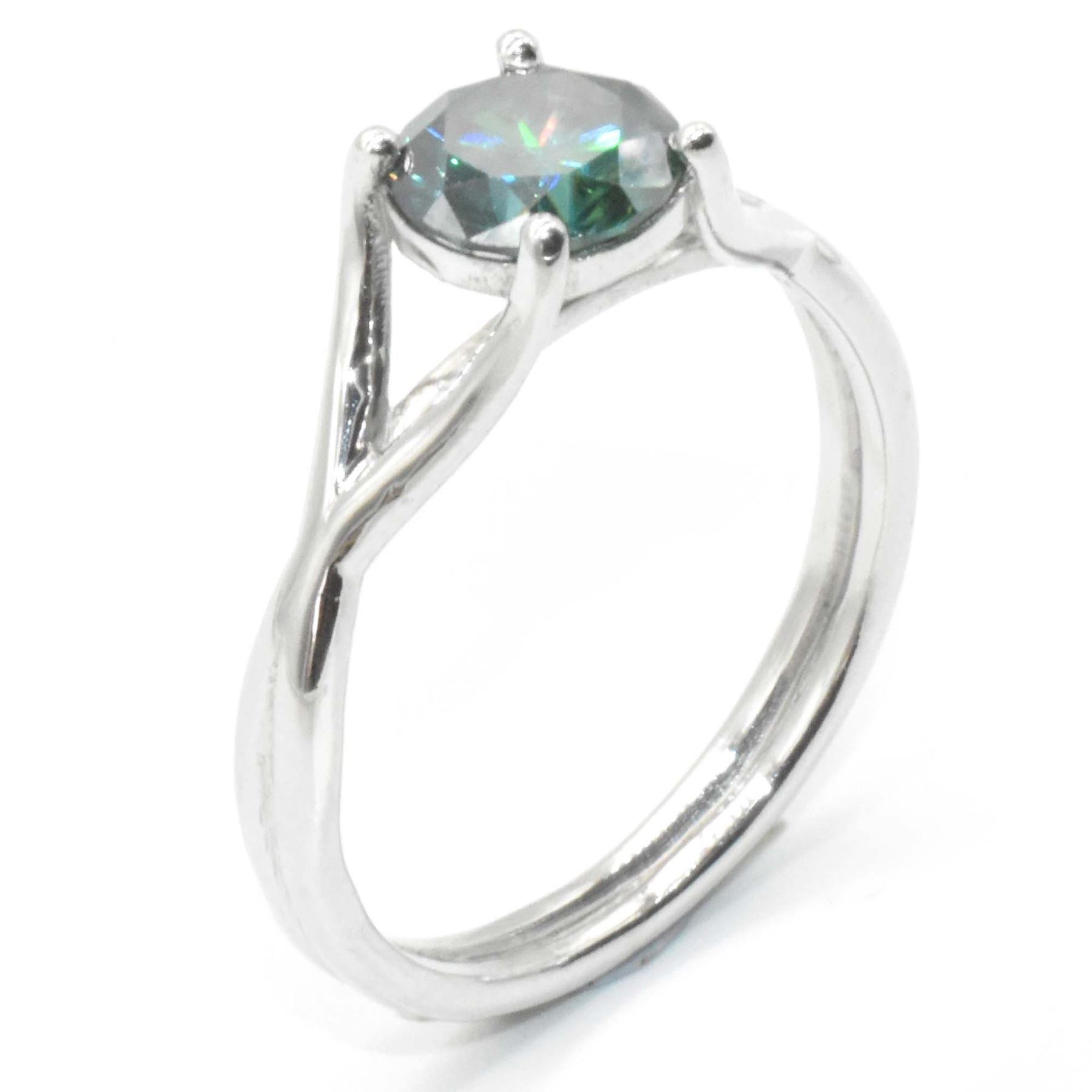 SILVER MOISSANITE (ROUND 7.5 MM)(1.7CT) RHODIUM PLATED MENS RING TEST AND LOOKS BETTER THAN DIAMOND RING (~WEIGHT 3.15G)