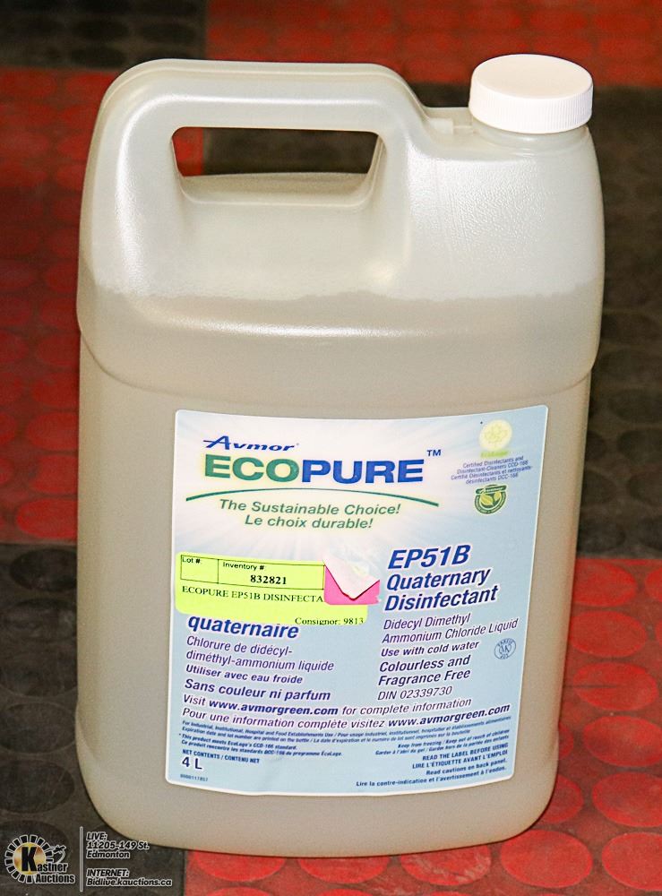 4L JUG OF ECOPURE EP51B QUATERNARY DISINFECTANT. COLORLESS AND ODORLESS-INDUSTRIAL