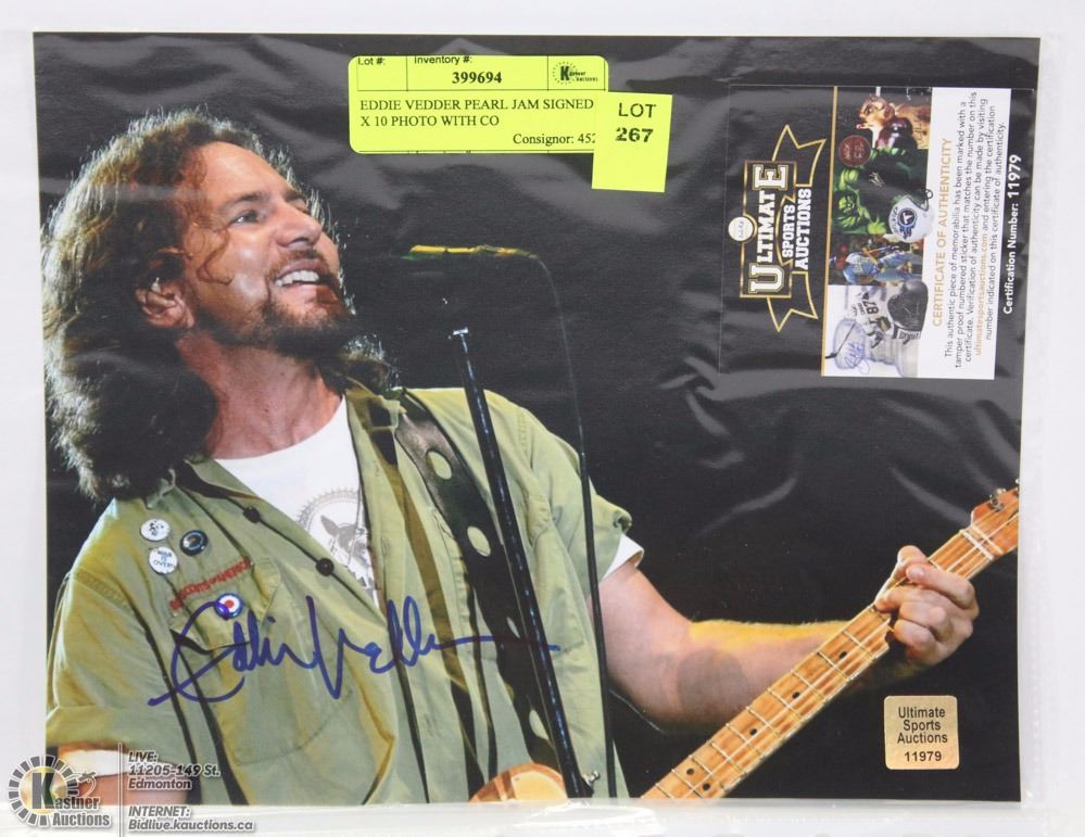 EDDIE VEDDER PEARL JAM 8 X 10 PHOTO WITH COA