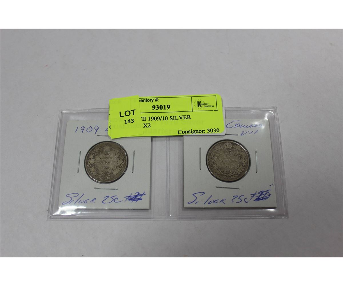 EDWARD VII 1909/10 SILVER QUARTERS X2