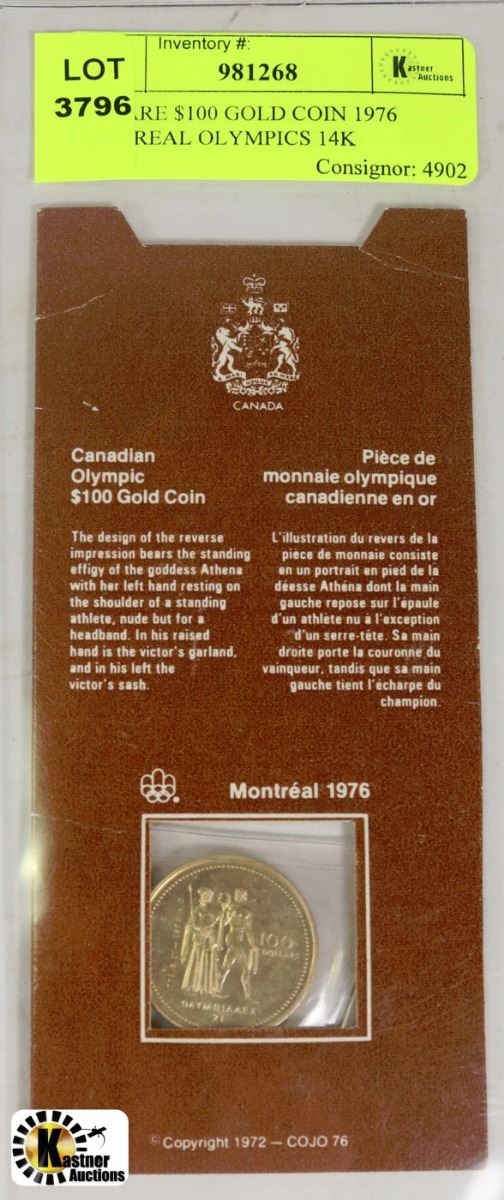 EE) RARE $100 GOLD COIN 1976 MONTREAL OLYMPICS 14K