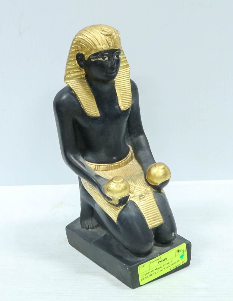 EGYPTIAN MADE PHARAOH ORNAMENT BLACK AND GOLD