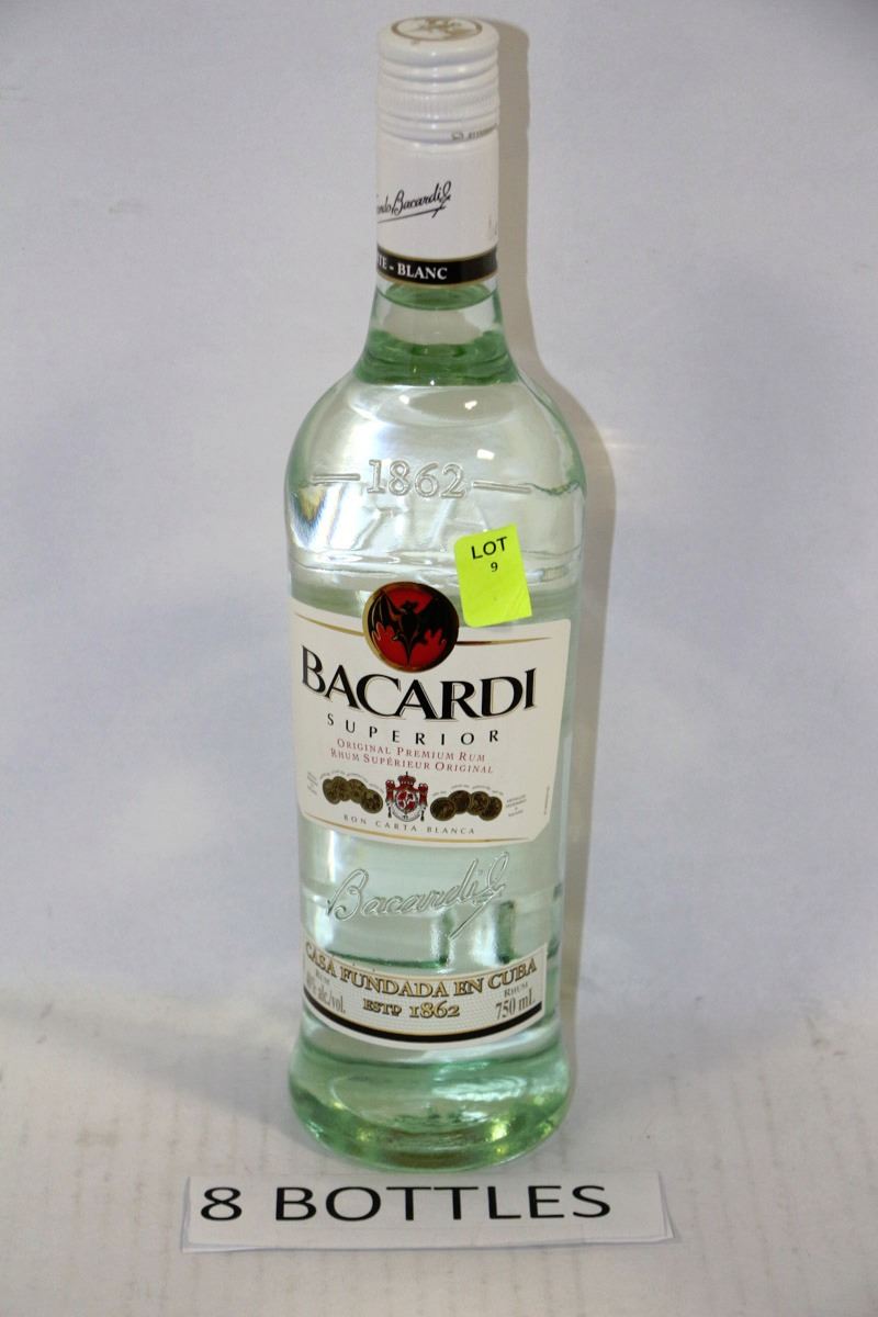 EIGHT 750ML BOTTLES OF BACARDI RUM 40%
