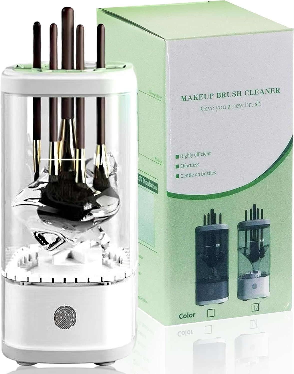 ELECTRIC MAKEUP BRUSH CLEANER MACHINE, UPGRADE COSMETIC BRUSH CLEANER,AUTOMATIC SPINNING USB EFFICIENT MAKEUP BRUSH CLEANER FIT FOR ALL SIZE MAKEUP BRUSHES (WHITE)