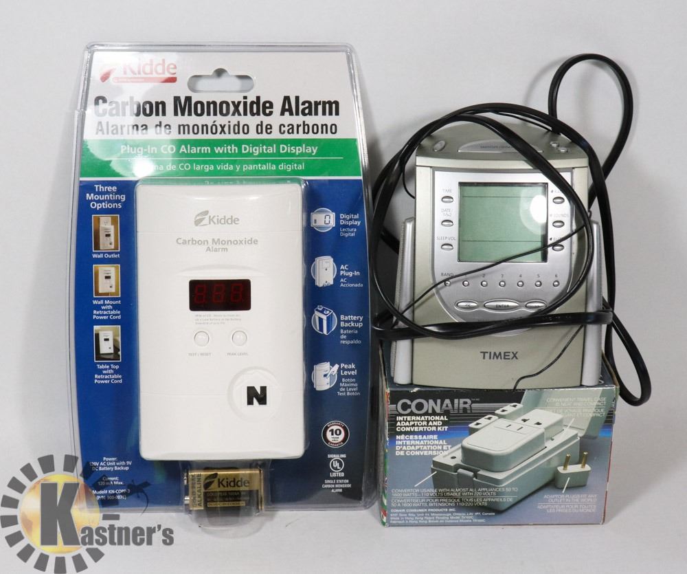 ELECTRONICS- TRAVEL ADAPTER, CLOCK, CO MONITOR