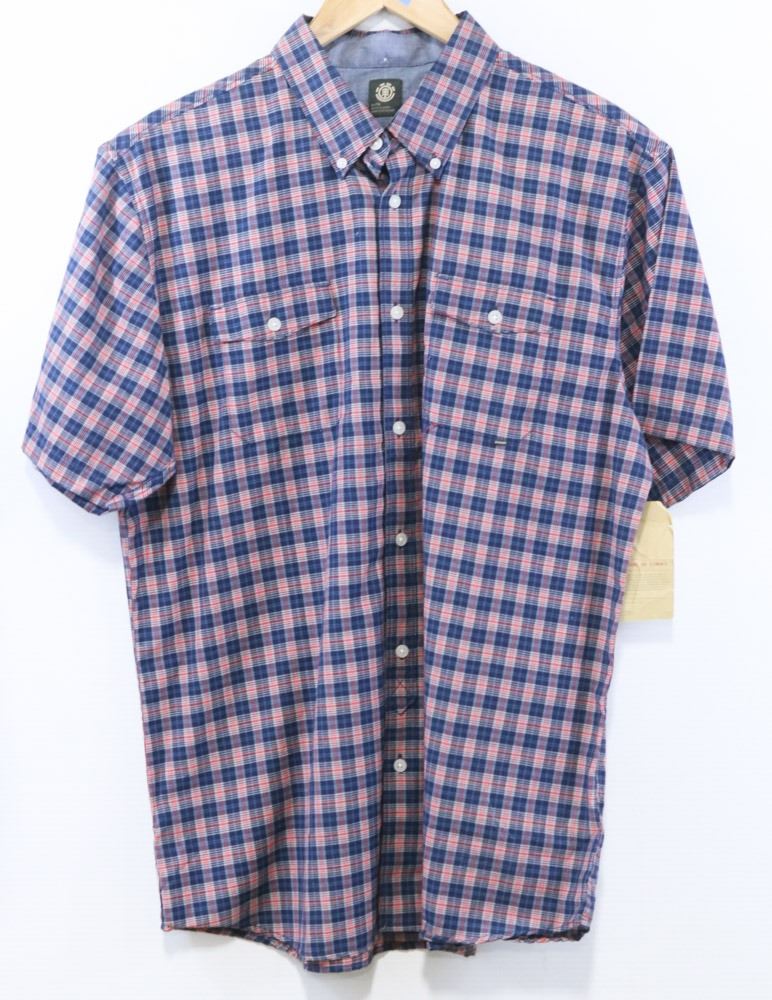 ELEMENT MEN'S NAVY/RED PLAID SHORT SLEEVE BUTTON UP