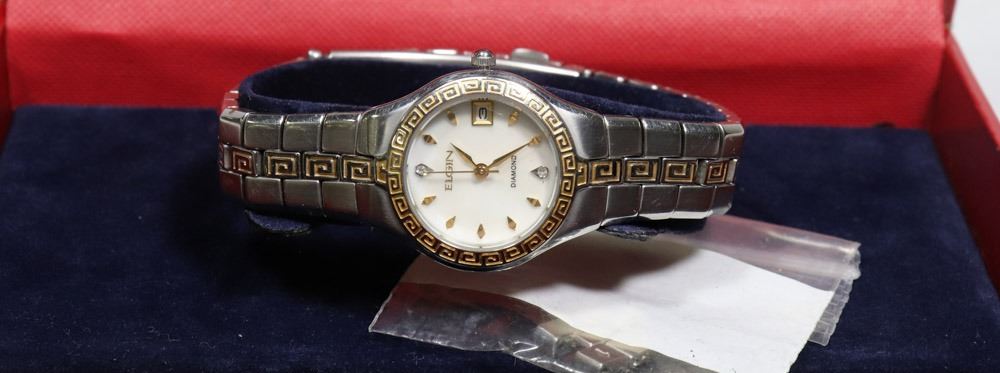 2 DIAMONDS ON MOTHER OF PEARL FACE WITH DATE, NEW BATTERY & EXTRA LINKS - JEWELLERY