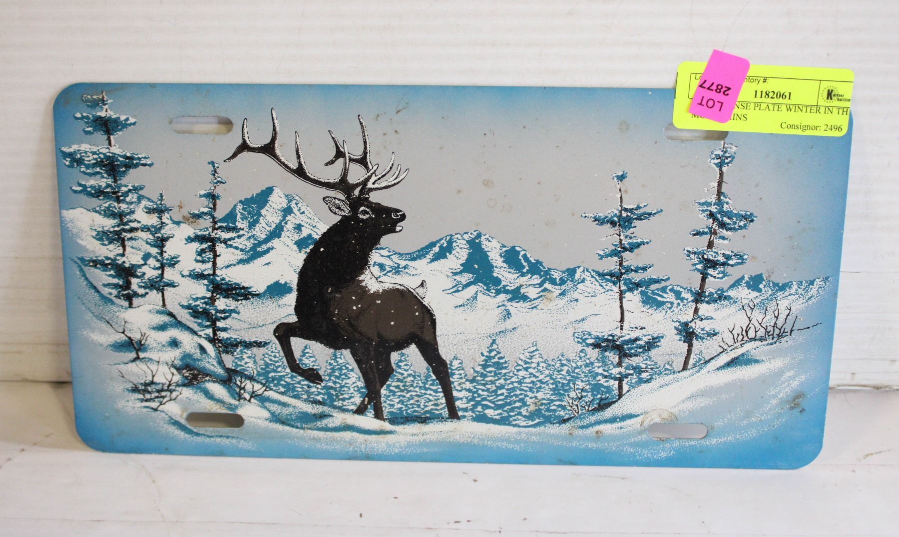 ELK LICENSE PLATE WINTER IN THE MOUNTAINS