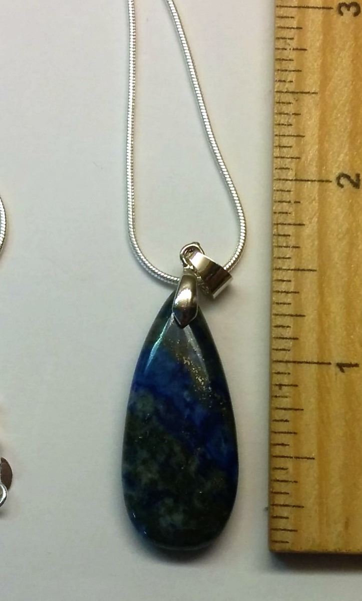 ELONGATED TEAR DROP SODALITE PENDANT ON CHAIN