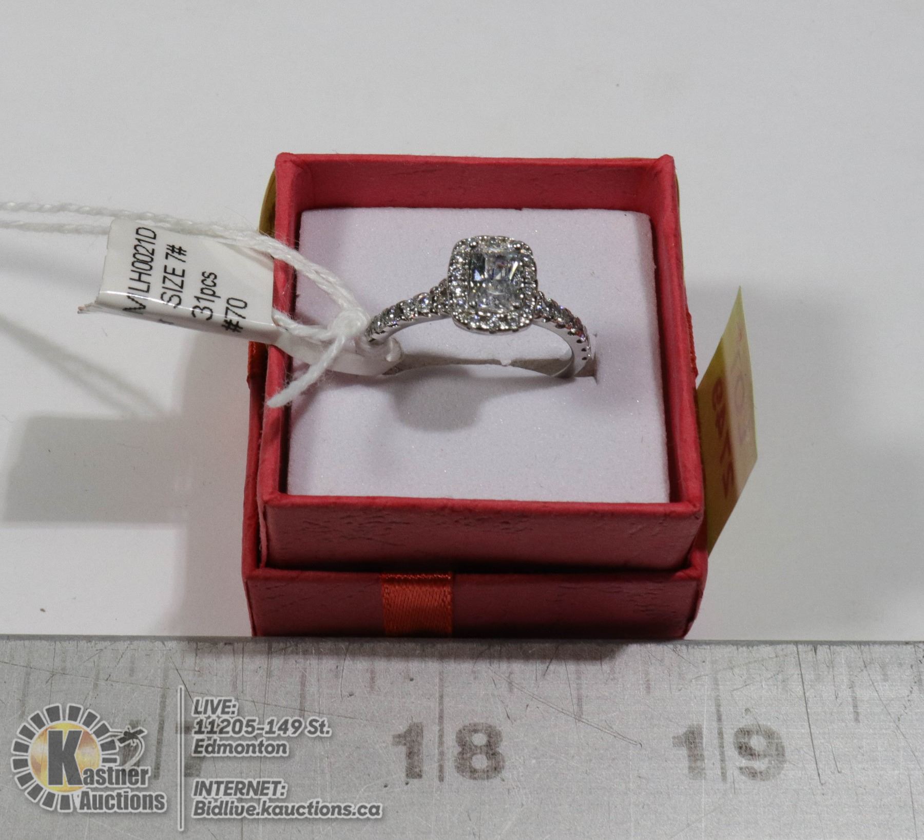 925 SILVER,CENTER 6X6 EMERALD CUT AAA WHITE CZ. 31 HANDSET STONES SIZE 7. 2.9 GRAMS. RHODIUM PLATED (LOOKS LIKE WHITE GOLD). RETAILS $150.00