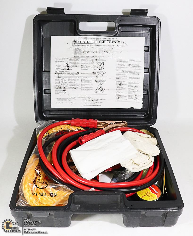 EMERGENCY ROADSIDE SAFETY KIT, BOOSTER CABLES,