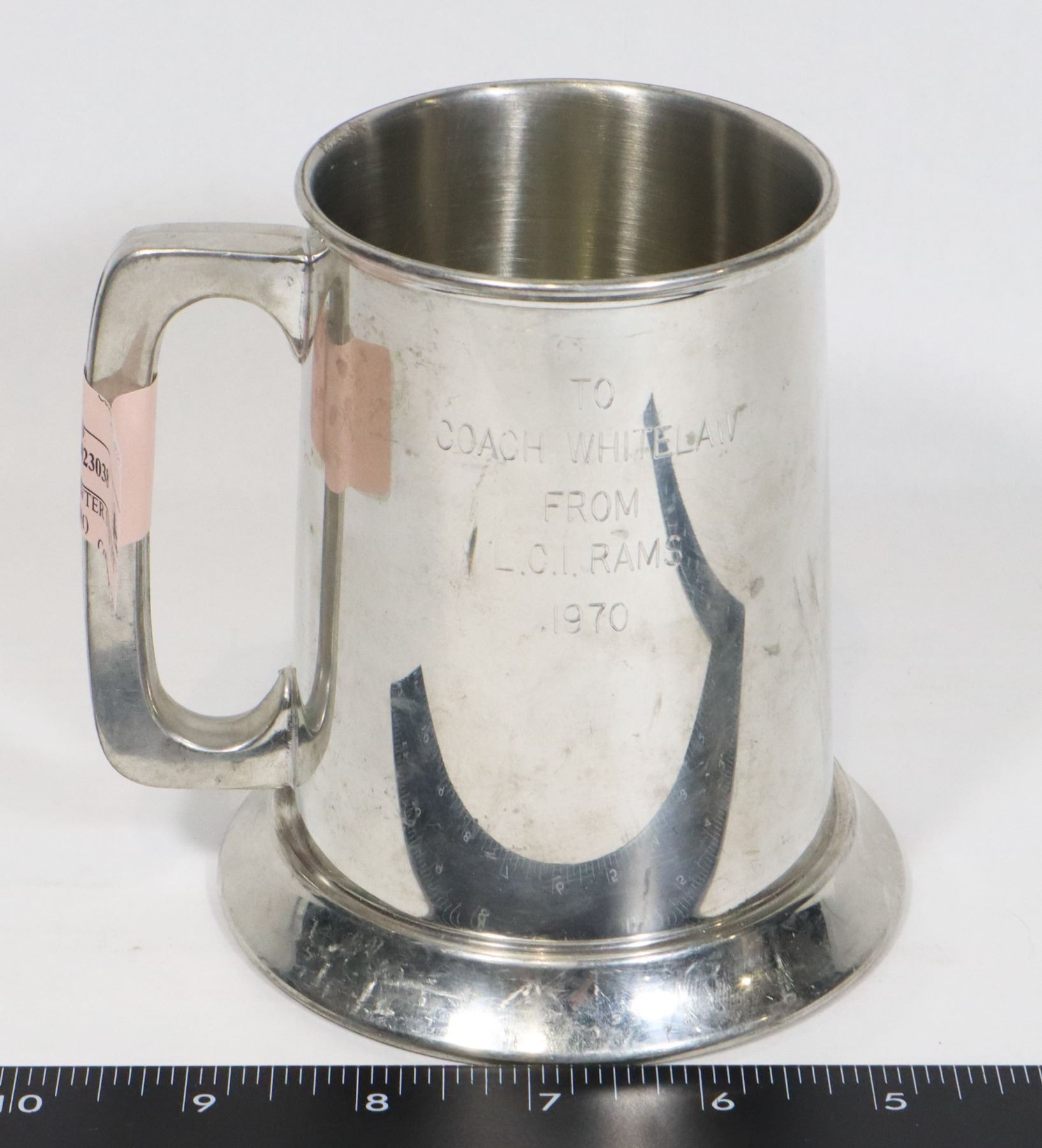 ENGRAVED PEWTER STEIN 1970 (GLASS BOTTOM)