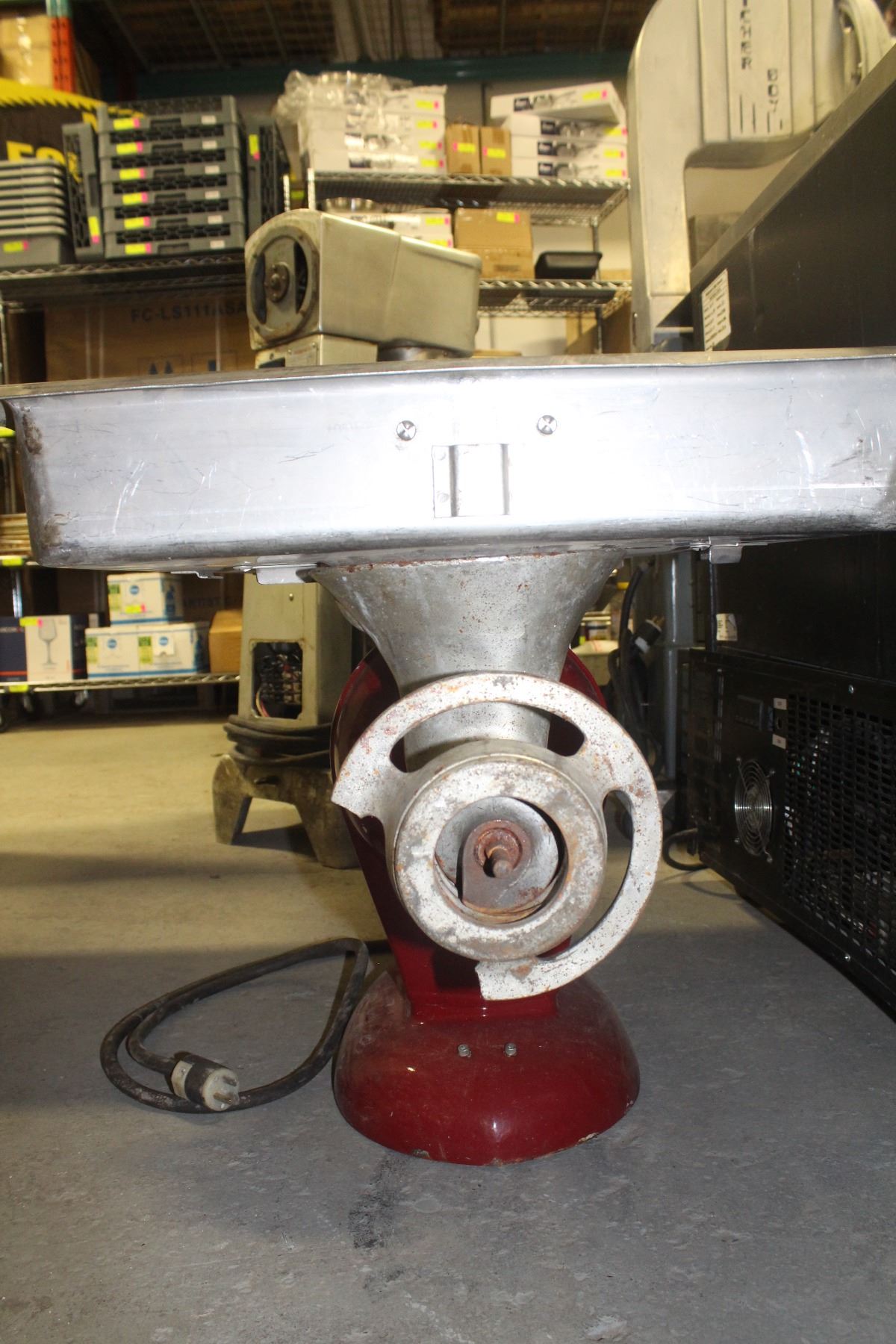 M3: 2620, SINGLE PHASE, 220V, 5A, 1HP, 1425 RPM, AUGER & HOPPER INCLUDED *WORKING, #32 SIZE HEAD. *MISSING DIE HEAD. 34" X 11" X 24" (INCLUDING HOPPER), HOPPER: 36" X 21" X 4"