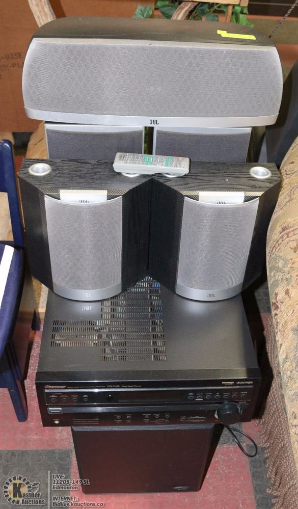 JENSEN SUBWOFFER, POLK AUDIO STAND UP SPEAKERS, JBL CENTER CHANNEL SPEAKER & JBL SIDE SPEAKERS