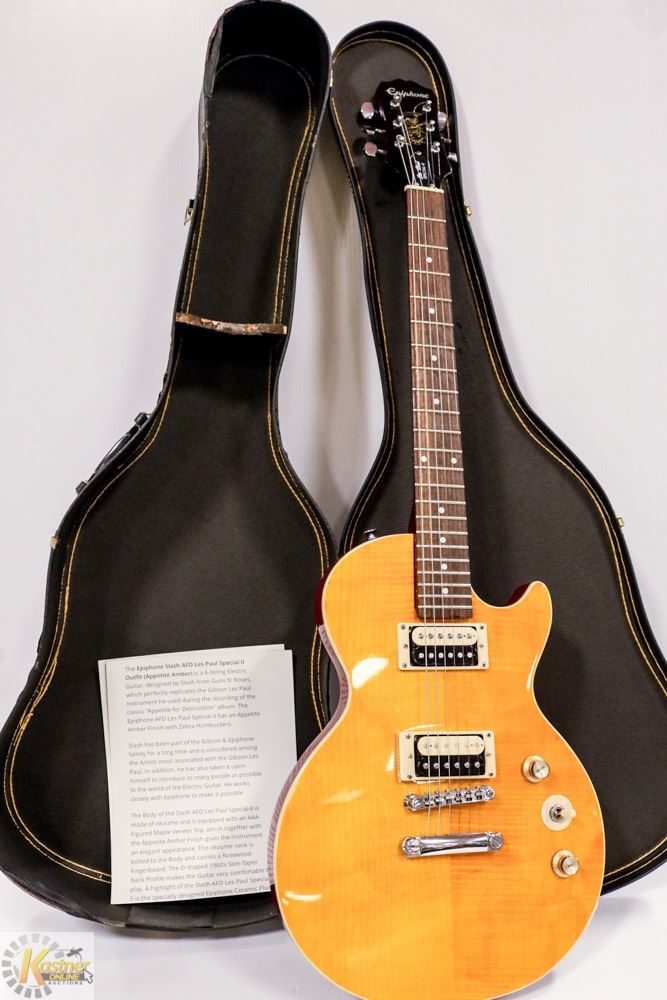 GUITAR WITH FEATURE SHEETS INCLUDES CASE AND GUNS AND ROSES CAP