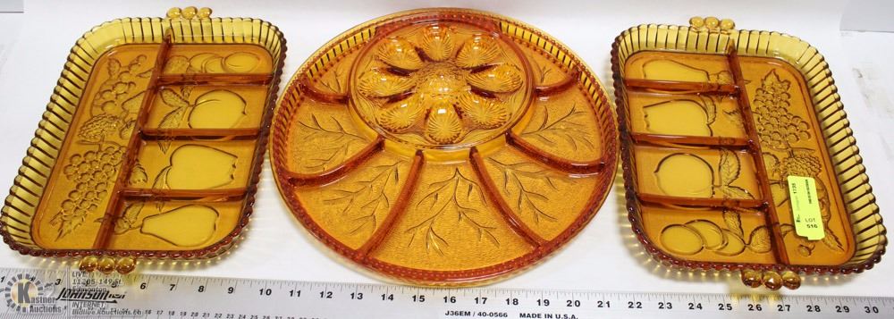 ESTATE 3 PC AMBER GLASS SERVING SET