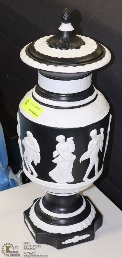ESTATE BLACK AND WHITE 2 TONE LIDDED VASE